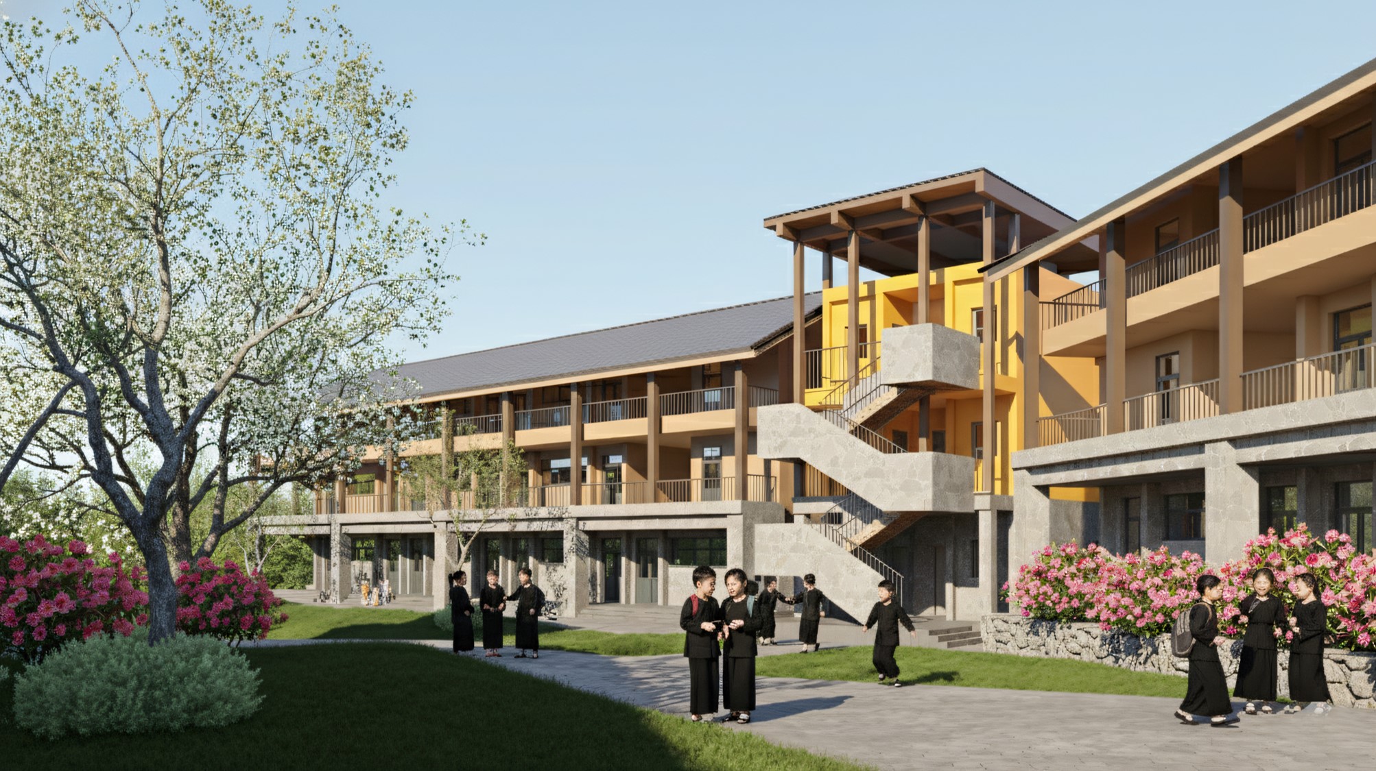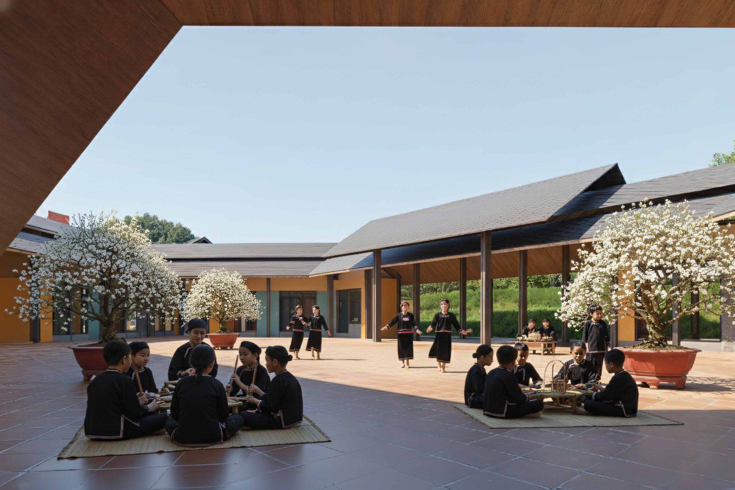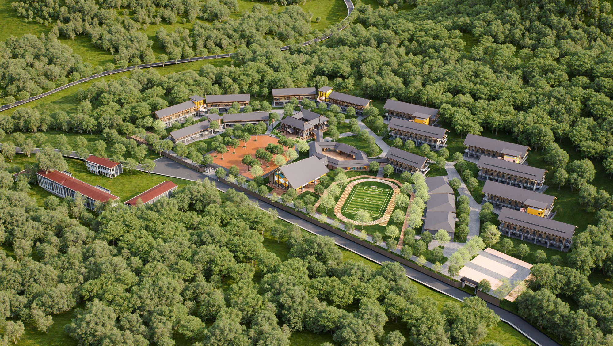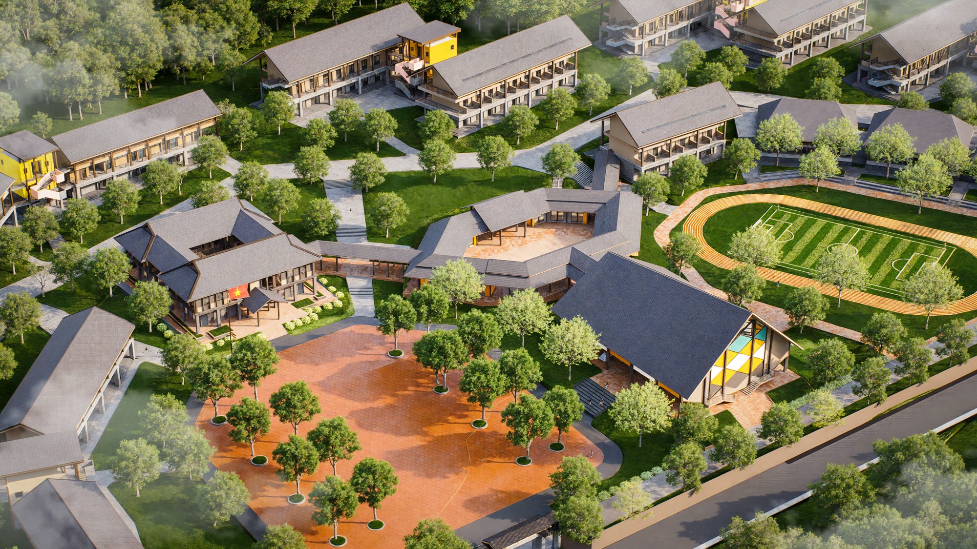 Giữ gìn bản sắc và kết nối cộng đồng. Trong thiết kế trường liên cấp nội trú, các kiến trúc sư Sunjin Vietnam hướng đến một không gian học tập mang đậm tinh thần dân tộc, nơi giá trị bản địa được chuyển hóa tinh tế qua ngôn ngữ kiến trúc hiện đại.
