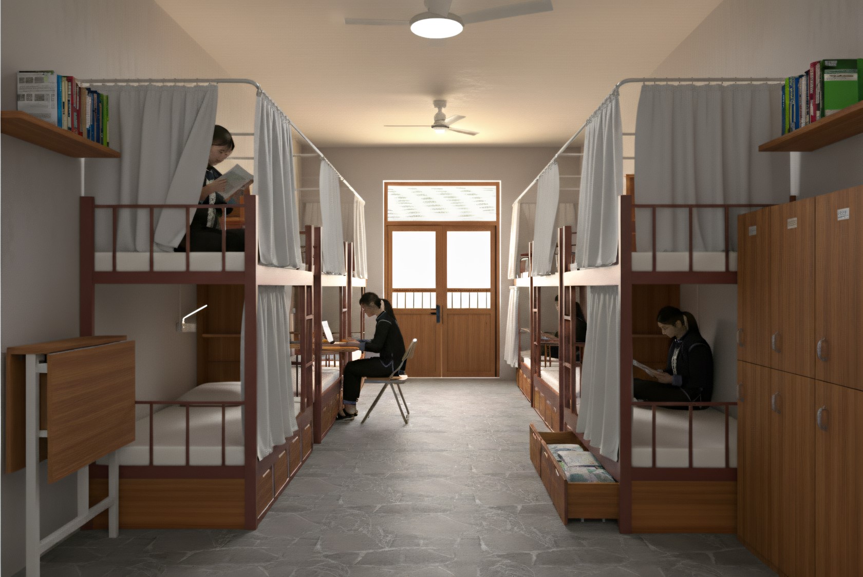 Tại Trường phổ thông nội trú liên cấp Tiểu học và THCS Phục Hòa – Cao Bằng, khu thể thao được bố trí như điểm khởi đầu của tổng thể, đóng vai trò trung tâm kết nối hai không gian: nhà trường và cộng đồng địa phương. Không chỉ là nơi rèn luyện thể chất, khu vực này còn trở thành biểu tượng của sự cởi mở và giao thoa, góp phần gắn kết đời sống học đường với hơi thở của xã hội xung quanh.